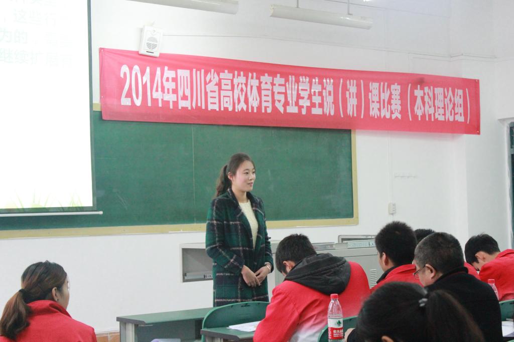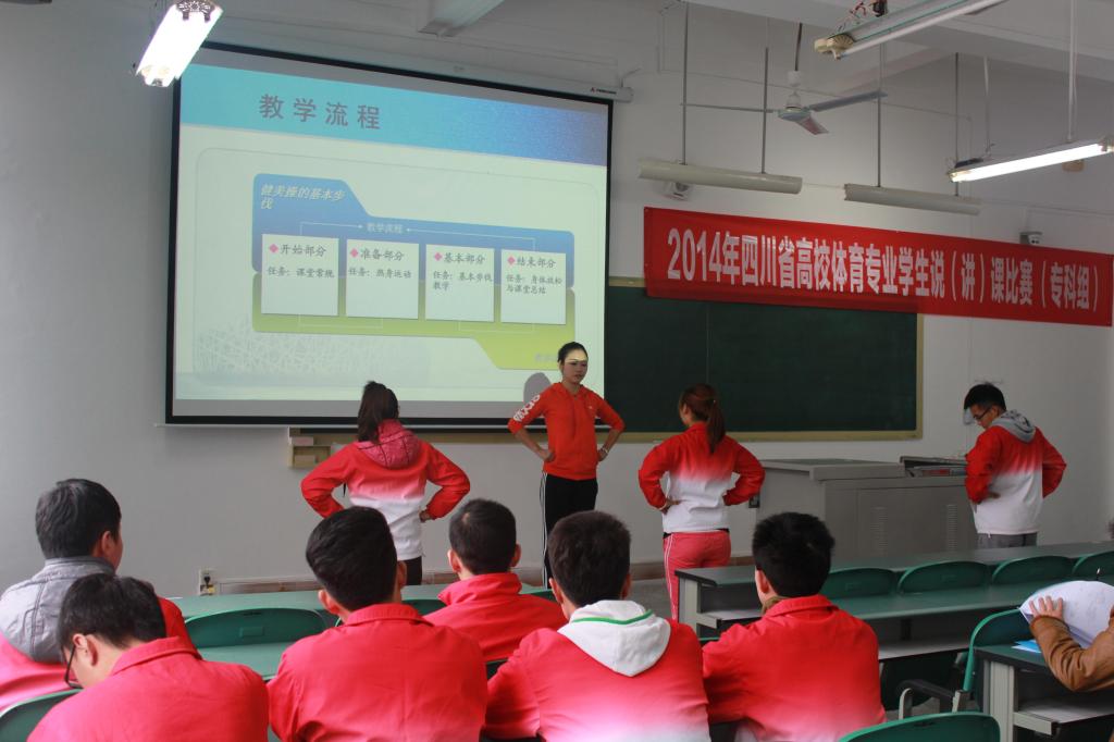 据了解,2014年四川省普通高等院校体育专业员工说(讲)课比赛由四川省教育厅主办,全省共15个体育院校,55名本(专)科同学参赛