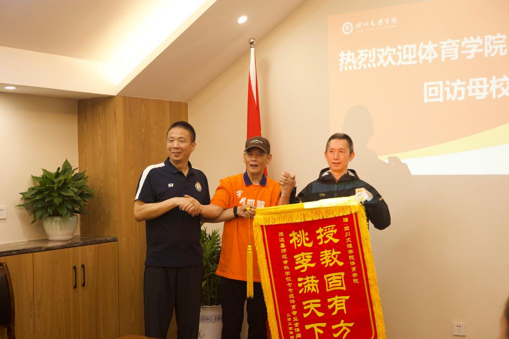 参观结束后,在体育馆117会议室召开了1977级师生座谈会,员工办负责人及公司党政领导出席。公司党委书记王兆忠代表学院表达了对学院教师前辈和员工们热诚的欢迎。员工代表向学院赠送了锦旗,“授教固有方,桃李满天下”表达了员工们对学院的感恩、肯定和期望。经理佘涛介绍了学院发展历程、现状和规划,并期待前辈及员工们对学院的发展指点迷津。接下来,进行了交流发言。大家纷纷表示,毕业四十多年重回母校,亲眼见证了学校翻天覆地的变化,为学校的办学成就感到欣慰。在交流过程中,饱含感慨、感动和感恩。前辈邓朝胜等三位老师还就学院的特色发展、创新发展提出了宝贵的建议。